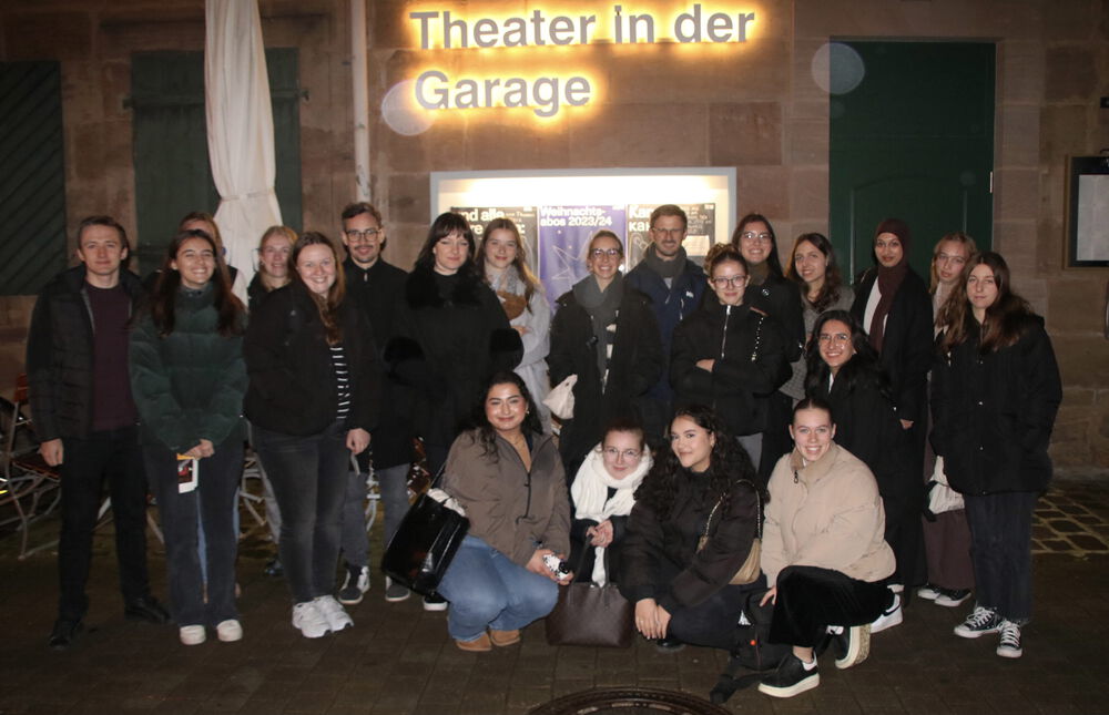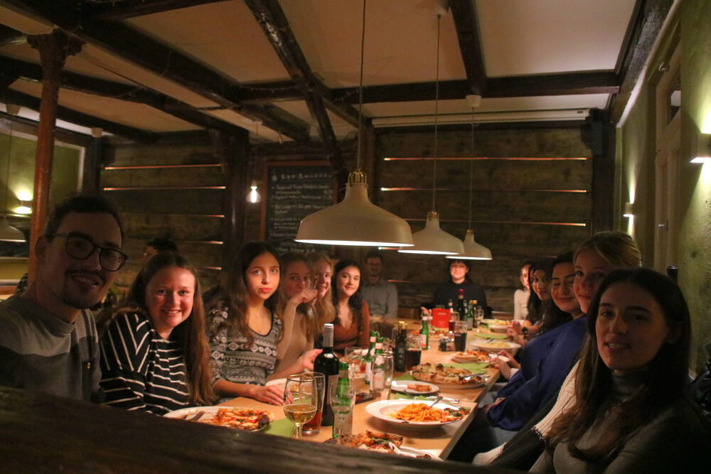 Bevor wir aber in den Genuss dieses Theaterstücks gekommen sind, war ein Großteil der Teilnehmer*innen aus allen 13. Klassen der FOS Erlangen mit Frau Schobert-Böhnlein, Frau Troll, Frau Zeiner und Herrn Böhnlein beim Italiener. Hier haben wir uns mit Pizza und Pasta und viel guter Laune für die Vorstellung gestärkt.