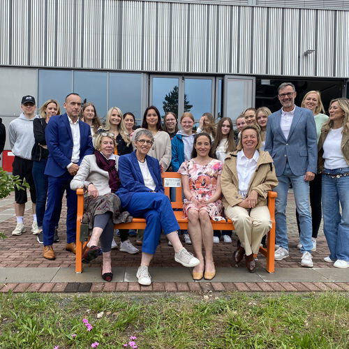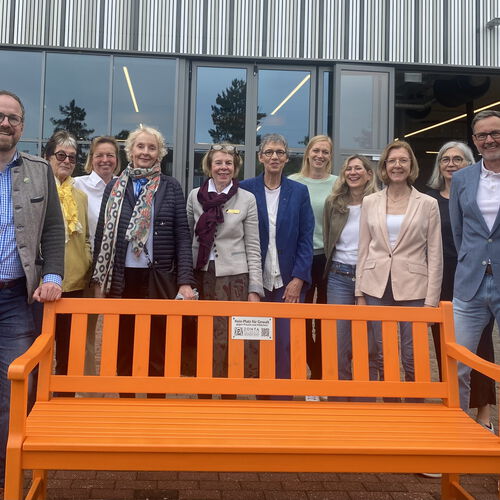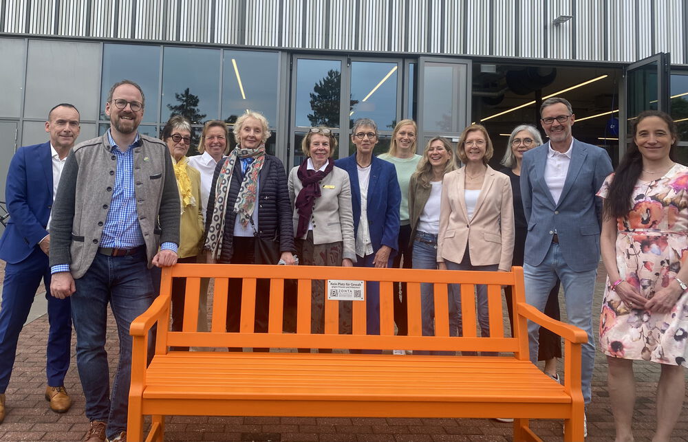 „Hier ist kein Platz für Gewalt gegen Frauen“. Mit diesem Slogan sind die neuen orangenen Sitzbänke auf unserem Schulgelände versehen. Ein eingelassener QR-Code verlinkt auf eine Seite mit Anlaufstellen.