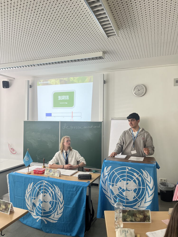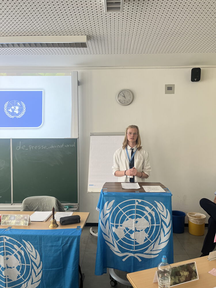 Dann fand die UN-Generalversammlung statt. Vor den einzelnen Ländern ging das Wort an die internationale Presse und Amnesty International, welche sich zu den Geschehnissen in Syrien äußerten und an die Menge appellierten. Anschließend stellten die einzelnen Länder ihre Ziele und Interessen in einer zweiminütigen Rede vor und beantworteten ein paar Fragen dazu.