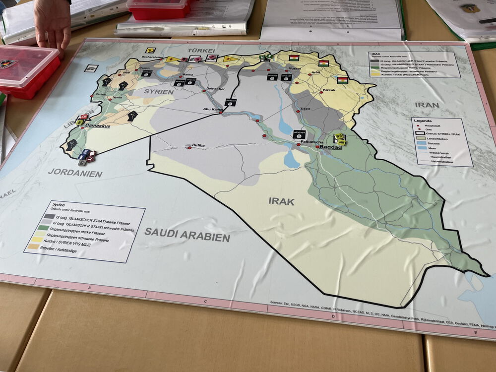 Am 11.06. fanden wir uns alle um 11:30 Uhr im Raum 213 ein, wo schon die beiden Jugendoffiziere auf uns warteten. Sie erklärten uns, was das Konfliktplanspiel genau war und um welches Thema es gehen würde: den Syrien-Konflikt. Als uns Frau Seifert – eine der Jugendoffiziere – dann mitteilte, welche Rollen es geben würde, fragte sie auch direkt, wer von uns Interesse am Posten des UN-Generalsekretärs hätte. Unter den drei Meldungen stimmten wir ab und wählten demokratisch die Person, die das gesamte Konfliktplanspiel „leiten“ würde. Nach einigen weiteren Informationen zum nächsten Tag durften wir dann schon wieder gehen.