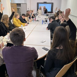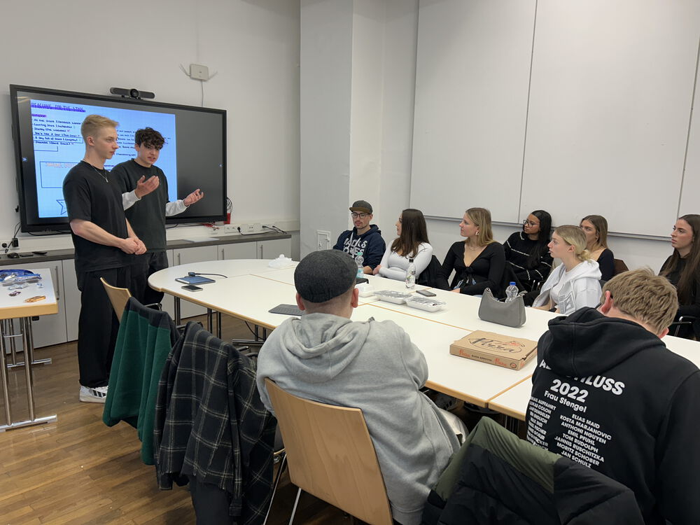 Weiterhin gab Frau Schützeneder einen kurzen Überblick über bisherige Aktionen, die durch die SMV erfolgreich durchgeführt wurden, wie Weihnachtstrucker, Schokonikolausverkauf, Weihnachtsmarkt, FOSballerturnier und Schulhoodies-Bestellung, und bedankte sich bei den Hauptorganisatorinnen und Hauptorganisatoren. Daraufhin wurden Vorschläge gesammelt, an welche Organisation das eingenommene Geld gespendet werden soll. Demokratisch entschied sich die SMV für das Erlanger Tierheim und die Erlanger Tafel.