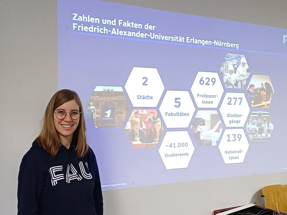 Am 05.02.2025 stellte Frau Salome Höfler (Dipl.-Theologin und Studienberaterin) an unserer Schule die Studiengänge der „FAU“ vor und erläuterte auch die einschlägigen Zulassungsvoraussetzungen und Bewerbungsmodalitäten. Darüber hinaus ging sie ausführlich auf die Gemeinsamkeiten und Unterschiede zwischen einem Studium an einer Universität und einer Fachhochschule ein. Nach dem Vortrag hatten die Schülerinnen und Schüler noch die Gelegenheit vertieftere Fragen im Einzelgespräch zu klären.