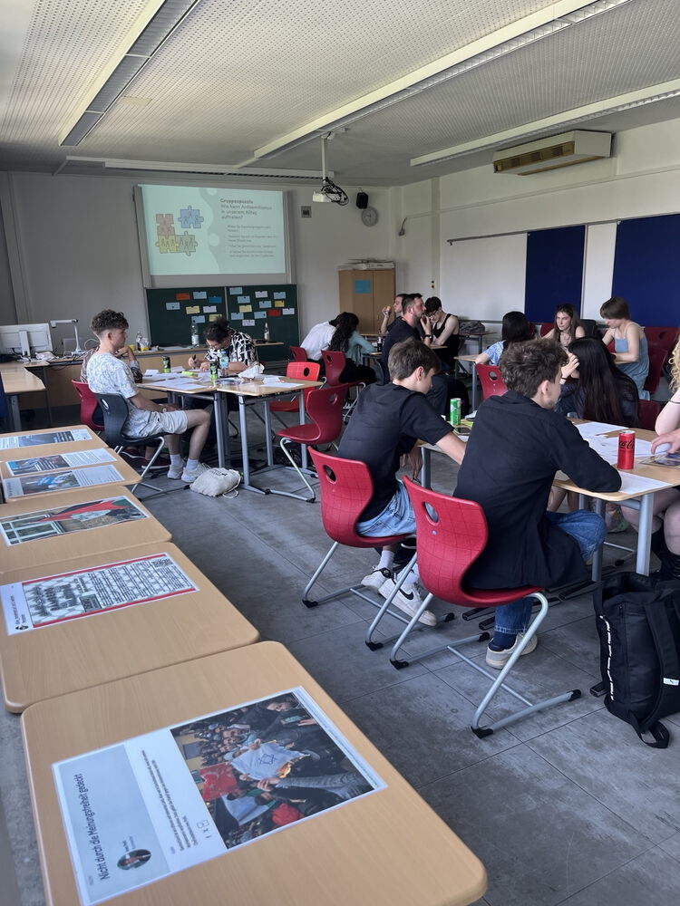 Am 26.06.24 besuchte der Bamberger Antisemitismusbeauftragte Patrick Nitzsche die Klasse S11d. Die Schülerinnen und Schüler lernten unterschiedliche Formen von Antisemitismus kennen und entwarfen gemeinsam Handlungsmöglichkeiten für den (Schul-)Alltag.
