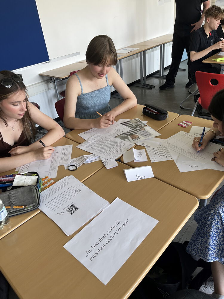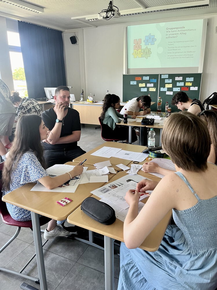 Im Laufe des Tages beschäftigten sich die Schülerinnen und Schüler mit sechs Formen von Antisemitismus (Moderner Antisemitismus, Sekundärer Antisemitismus, Antijudaismus, Philosemitismus, Vernichtungsantisemitismus, Islamischer Antisemitismus), die im Alltag von Betroffenen auftreten. Dabei setzten sie sich mit dokumentierten Erfahrungsberichten jüdischer und nichtjüdischer Betroffener auseinander. Zur Vertiefung reflektierten die Schülerinnen und Schüler den Kurzfilm „Masel Tov Cocktail“ und ordneten die Filmaussagen den Formen von Antisemitismus richtig zu.