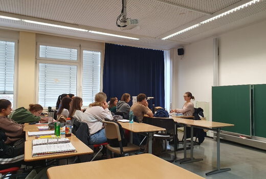 Die Regionalkrimiautorin Katharina Drüppel gibt Schüler*innen der 13. Klasse einen spannenden Einblick in ihre Arbeit.