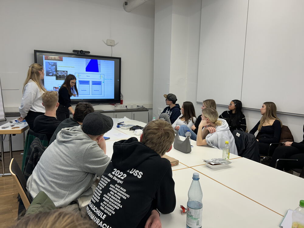 Weiterhin gab Frau Schützeneder einen kurzen Überblick über bisherige Aktionen, die durch die SMV erfolgreich durchgeführt wurden, wie Weihnachtstrucker, Schokonikolausverkauf, Weihnachtsmarkt, FOSballerturnier und Schulhoodies-Bestellung, und bedankte sich bei den Hauptorganisatorinnen und Hauptorganisatoren. Daraufhin wurden Vorschläge gesammelt, an welche Organisation das eingenommene Geld gespendet werden soll. Demokratisch entschied sich die SMV für das Erlanger Tierheim und die Erlanger Tafel.