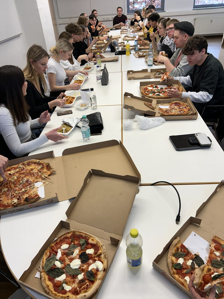 Zur Stärkung gab es Pizza, Pasta und Süßigkeiten. Danach wurde produktiv in den Gruppen weitergearbeitet und die Ergebnisse anschließend vorgestellt.