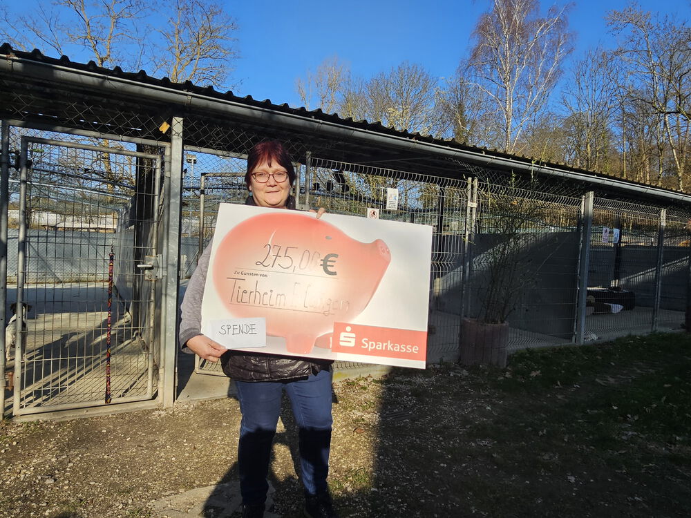 Frau Schick vom Tierheim Erlangen bedankte sich sehr herzlich für die Spende. Diese soll vor allem für die Beschaffung von Tierfutter verwendet werden.