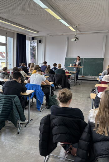 „Was würdest du tun, wenn du unschuldig im Gefängnis wärst?“ Mit dieser Frage zog die Krimiautorin Katharina Drüppel ihr Publikum sofort in den Bann. Sie las uns aus ihrem Regionalkrimi „Clemens Sartorius und der schuldige Mann“ vor und gab spannende Einblicke in ihre Arbeit als Autorin. Der vorgestellte Roman spielt in Erlangen und wirkte dadurch für viele besonders nah. Im Mittelpunkt steht der ehemalige Kriminalhauptkommissar Clemens Sartorius, der als Privatermittler einen abgeschlossenen Mordfall neu aufrollt: Eine Schülerin wurde ermordet, der vermeintliche Täter längst verurteilt und gleichzeitig lassen Zweifel an dessen Schuld Sartorius nicht los. Die düstere Atmosphäre machte die Lesung eindrucksvoll und fesselnd, sodass sich viele die Frage stellten: Wie geht es weiter?