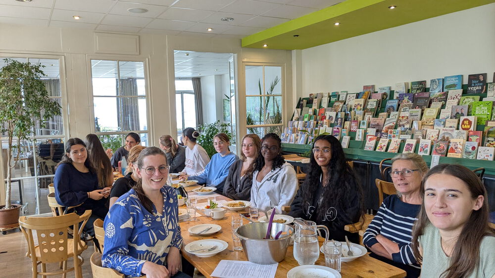 In gemütlicher Atmosphäre wurde ein veganes Drei-Gänge-Menü im Lesecafé Erlangen mit regionalen und saisonalen Zutaten zubereitet. Neben Tipps zur pflanzlichen Ernährung gab es viel Raum für gemeinsames Kochen, Probieren und den Austausch über nachhaltige Ernährung. Gemeinsam kochten die Schülerinnen und Schüler ein leckeres 3-Gänge-Menü und ließen den Tag mit einem gemeinsamen Essen in geselliger Atmosphäre ausklingen.