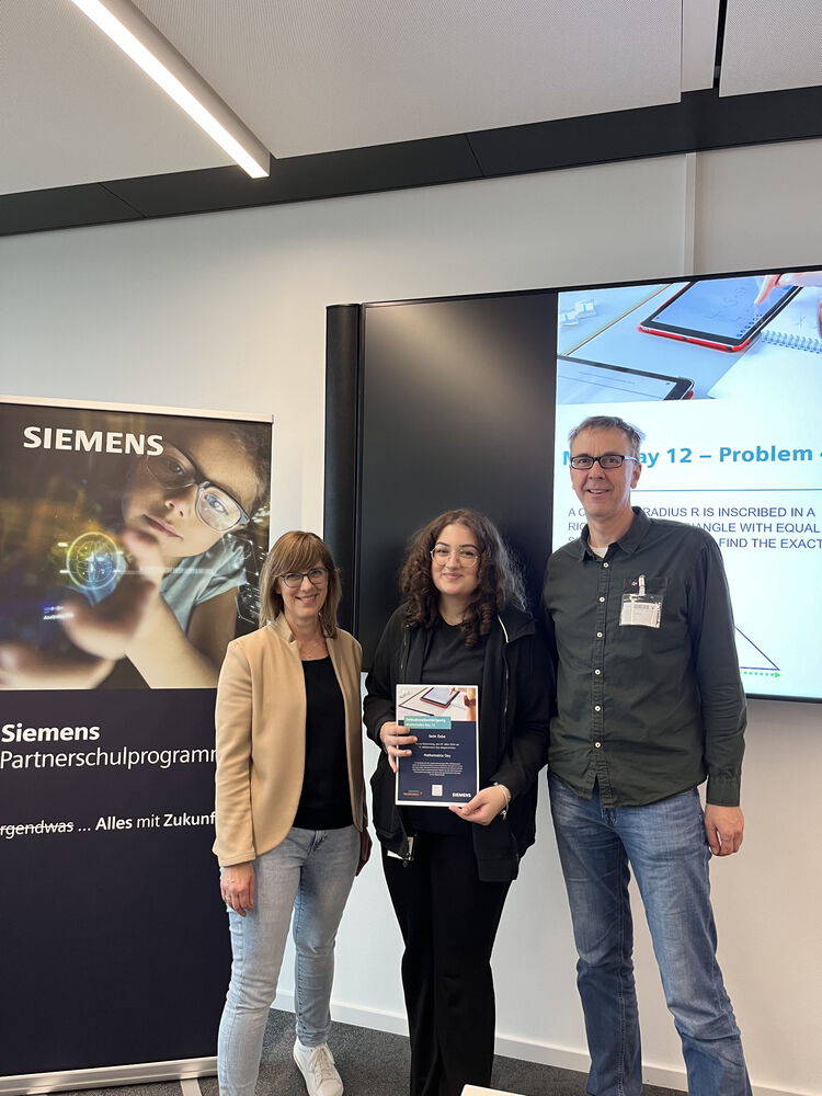 Am Freitag, den 7. März, fand zum 14. Mal der „Mathematics Day“ statt. Teilgenommen haben daran Schülerinnen und Schüler von insgesamt acht Siemens Partnerschulen aus Erlangen und der Region. Erfreulicherweise konnten dabei unsere drei Teilnehmer Selin, Anton und Catalin aus der Ausbildungsrichtung Technik nicht nur einen hervorragenden Eindruck hinterlassen, sondern Selin mit ihrer Gruppe sogar den Wettbewerb gewinnen. Bei der Lösung angewandter mathematischer Probleme aus der Geometrie, Zahlentheorie und Analysis konnte ihre Gruppe fast alle mathematischen Aufgaben fehlerfrei lösen. Durchgeführt wurde die Veranstaltung in englischer Sprache von Bryan Landmann von der Franconian International School.