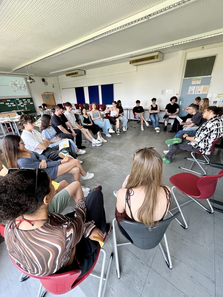 Am 26.06.24 besuchte der Bamberger Antisemitismusbeauftragte Patrick Nitzsche die Klasse S11d. Die Schülerinnen und Schüler lernten unterschiedliche Formen von Antisemitismus kennen und entwarfen gemeinsam Handlungsmöglichkeiten für den (Schul-)Alltag.